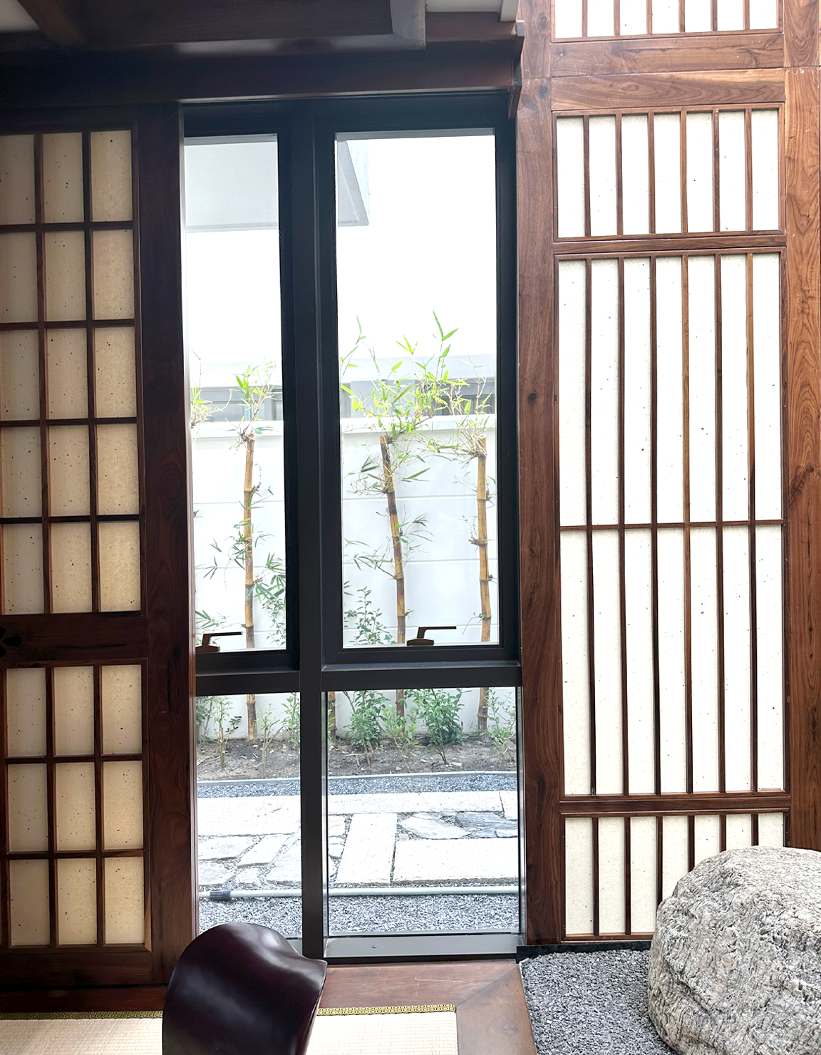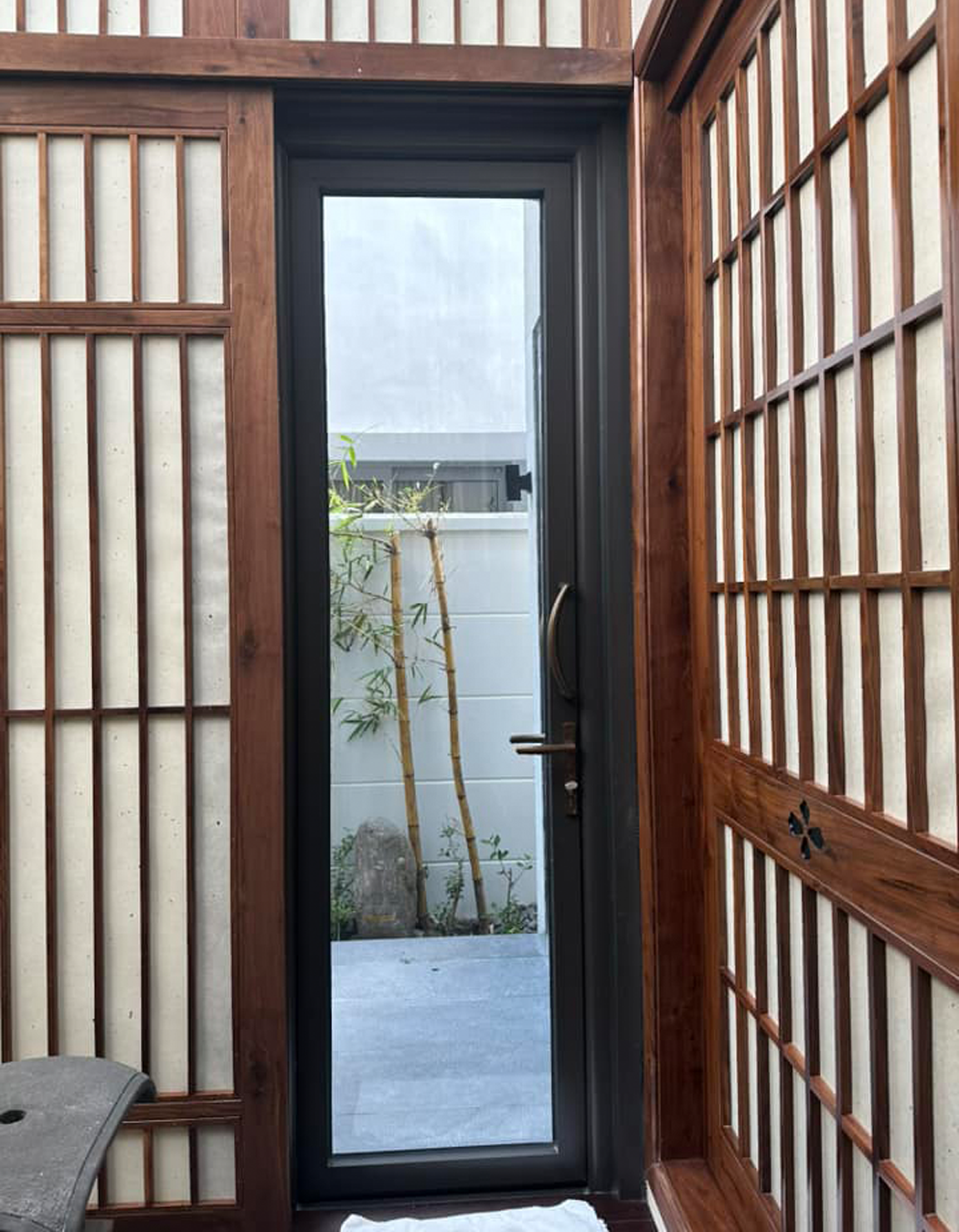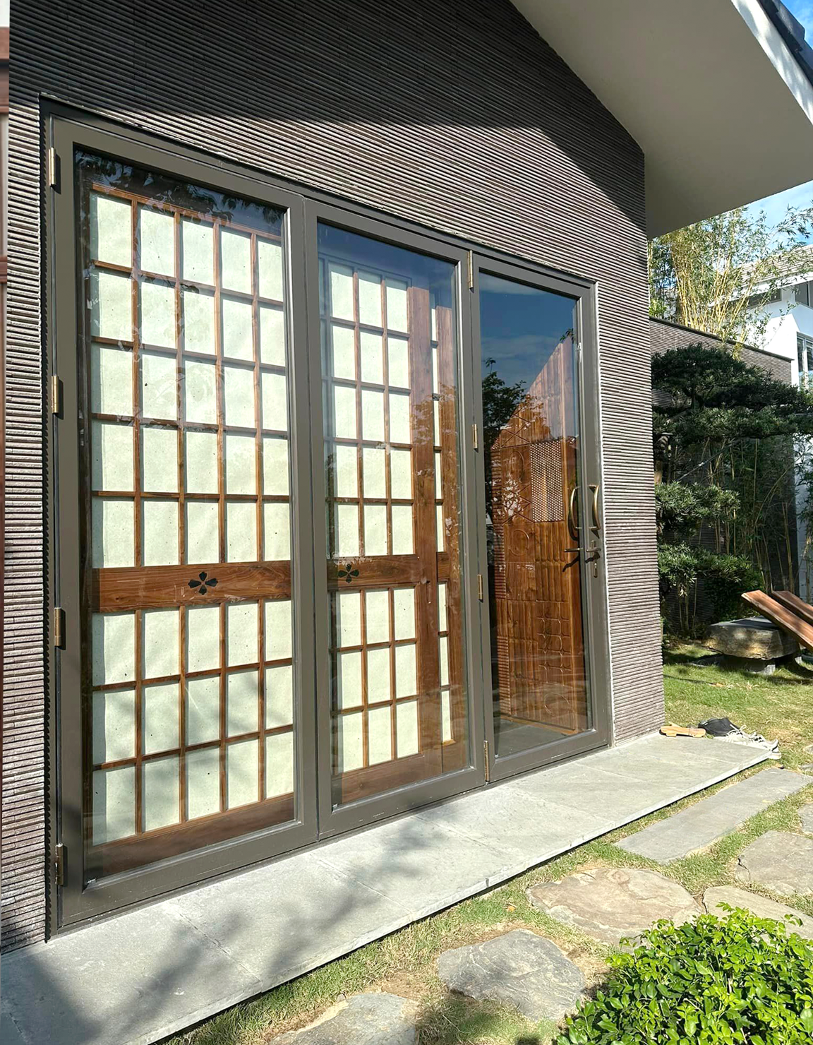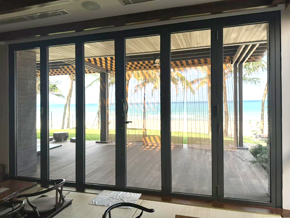 Phong cách Nhật Bản được thể hiện ấn tượng với các hệ cửa nhôm Nhật, tôn lên vẻ đẹp và sức bền của biệt thự hướng biển