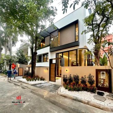 Ngôi nhà mang vẻ đẹp hiện đại với hình khối rõ ràng, mảng tường trắng tinh khôi kết hợp cùng hệ nhôm kính MAXPRO.JP màu đen mịn tạo nên sự tương phản đắt giá. Hệ cửa nhôm kính lớn không chỉ giúp mở rộng không gian mà và thanh lịch mở rộng tối đa tầm nhìn, đón ánh sáng tự nhiên chan hòa vào không gian bên trong. Không gian xanh được lồng ghép tinh tế với cây lớn giữ lại và sân vườn tiểu cảnh, tạo cảm giác sống giữa thiên nhiên dù đang ở khu đô thị.
